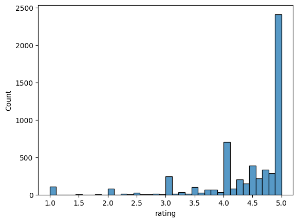 rating 4.5 0.71 1.00 4.30 4.70 5.00 5.00